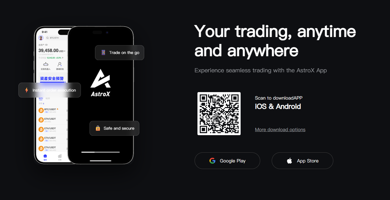 AstroX là nền tảng giao dịch tài sản số được xây dựng từ các tình huống giao dịch thực tế. Tập trung vào hiệu quả, an toàn, minh bạch và niềm tin dài hạn, AstroX hướng đến việc tạo ra một môi trường giao dịch dễ kiểm soát hơn cho những trader thực thụ.