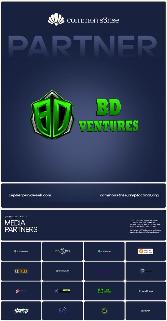 BD Ventures is proud to announce its role as an official Media Partner of Common S3nse – Amsterdam Edition, taking place this September as part of the renowned Cypherpunk Week.